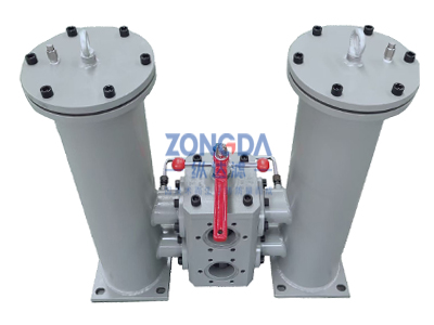 雙筒過濾器,也叫雙并聯(lián)過濾器,由兩個單筒過濾器及換向閥組成,在工作過程中,單筒過濾器濾芯堵塞需要換濾芯時,可以轉(zhuǎn)動換向閥切換到另外一個單筒過濾器繼續(xù)工作,實(shí)現(xiàn)不停機(jī)的情況下更換濾芯,保證主機(jī)正常連續(xù)工作。