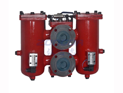 雙筒過濾器,也叫雙并聯(lián)過濾器,由兩個(gè)單筒過濾器及換向閥組成,在工作過程中,單筒過濾器濾芯堵塞需要換濾芯時(shí),可以轉(zhuǎn)動(dòng)換向閥切換到另外一個(gè)單筒過濾器繼續(xù)工作,實(shí)現(xiàn)不停機(jī)的情況下更換濾芯,保證主機(jī)正常連續(xù)工作。